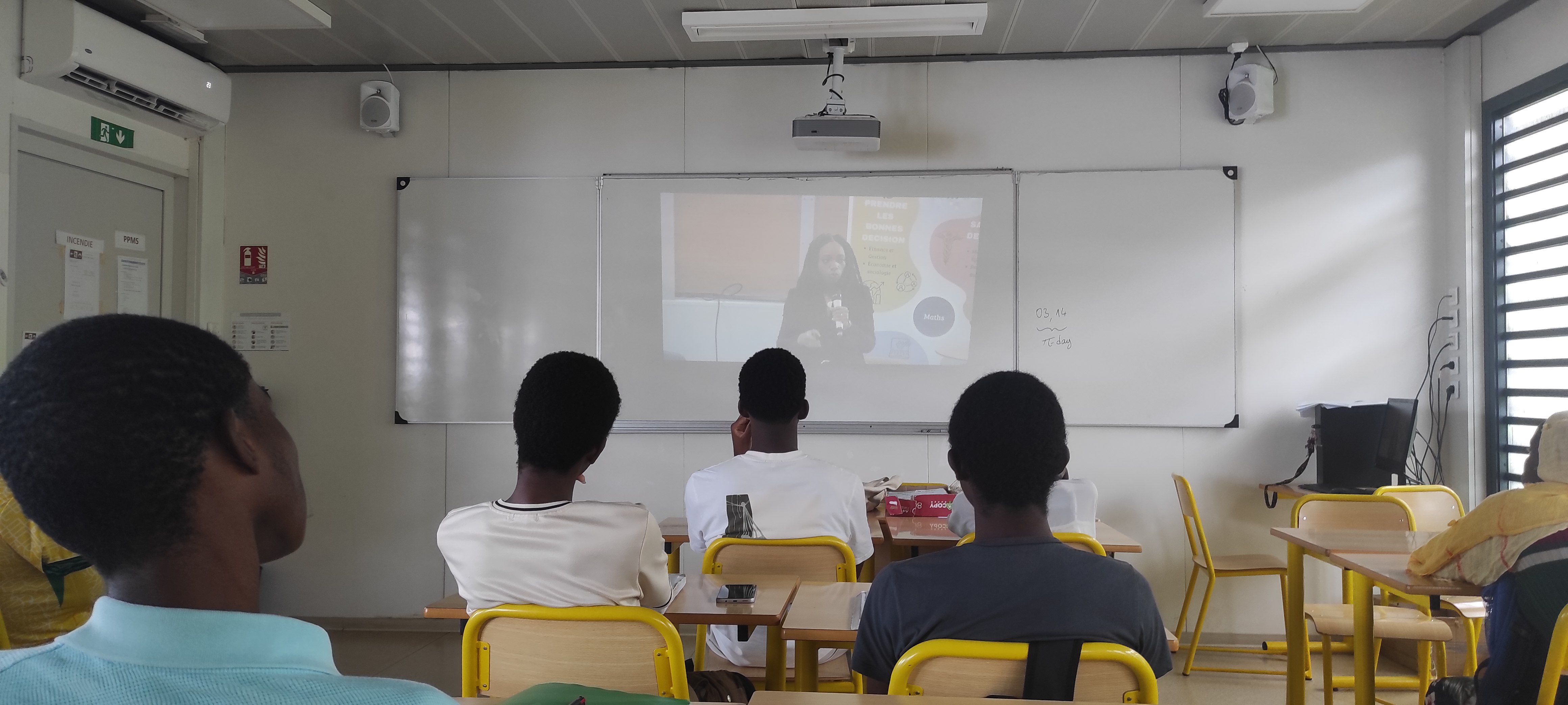 Au lycée, quelques petites devinettes et calculs ont ponctué la semaine, une conférence de Nathalie Ayi (maître de conférence à Paris Sorbonne) pour les élèves de TG spé maths, et une sortie dans la cour pour illustrer le thème « Égalités ».